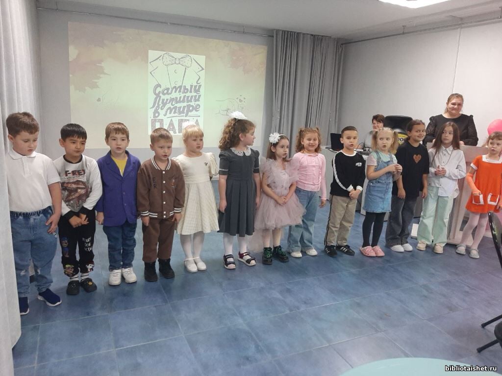 19 октября, в День отца, Тайшетская библиотека распахнула двери для пап и их детей из детского сада «Рябинка», пригласив на увлекательную квиз-игру "Папин день"! В этот особенный день, посвященный важной роли отца в семье, ребята с гордостью читали стихи о своих замечательных папах, а затем началось настоящее соревнование! Шесть раундов квиза – «Семейная викторина», «Устами младенца», «Ладошки», «Угадай-ка», «Танцевальный батл» и «Любимые персонажи» – проверили эрудицию и сплоченность команд. Папы активно поддерживали своих детей, демонстрируя не только знания, но и дружеский азарт. Квиз-игра "Папин день" стала ярким и запоминающимся событием, укрепившим семейные ценности и подарившим всем участникам отличное настроение!