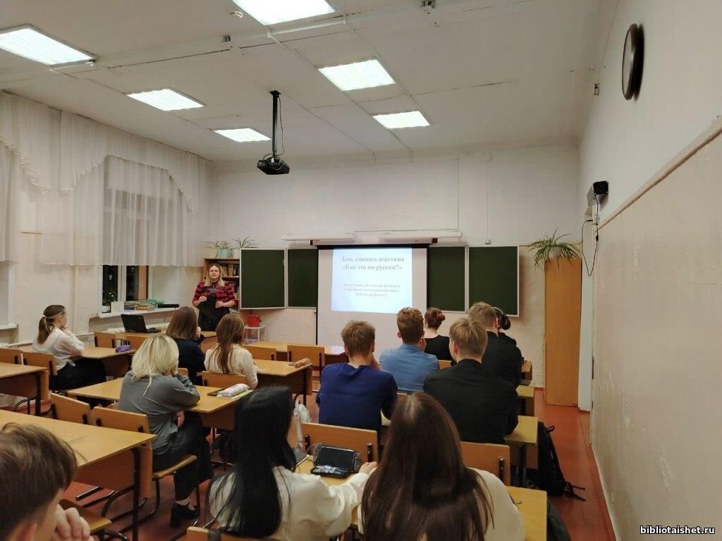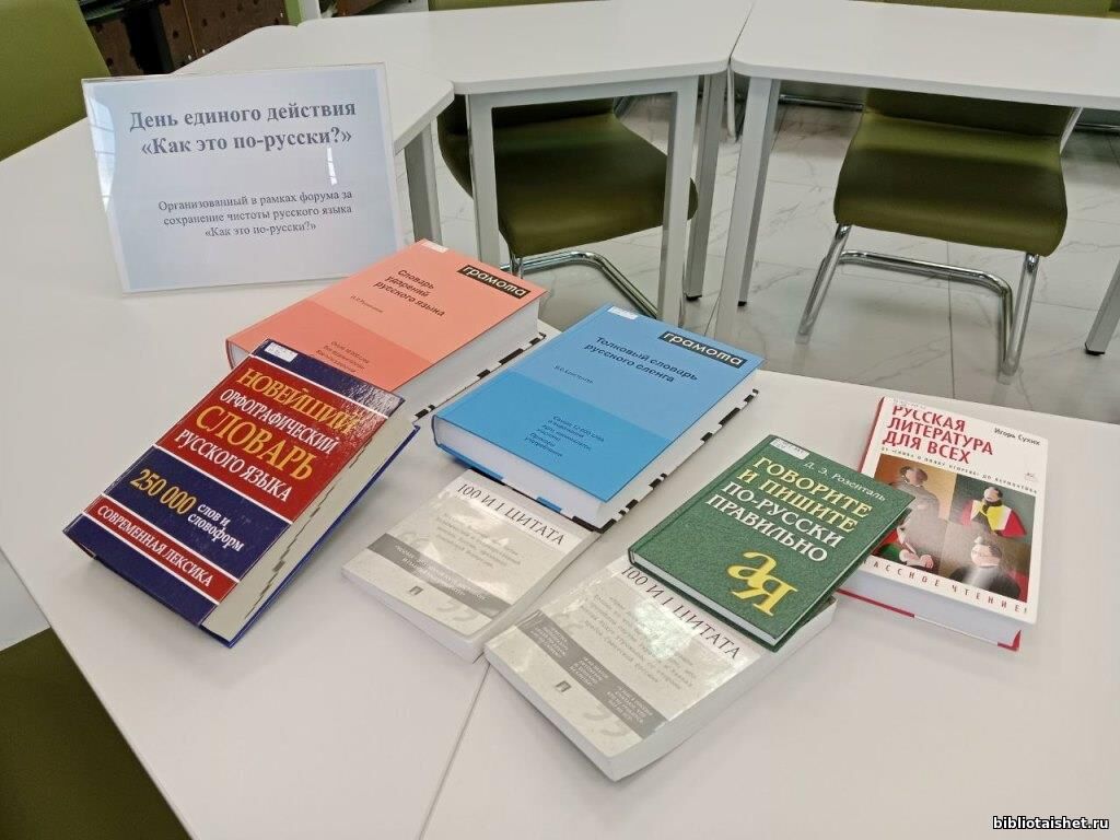 16 декабря Тайшетская библиотека присоединилась ко Дню единого действия в формате акции «Как это по-русски?», организованного по инициативе Правительства Иркутской области. Цель Дня единого действия - повышение качества речевого общения на русском языке среди молодежи, привлечение внимания к современным тенденциям развития русского языка и пробуждение интереса к его изучению. В день проведения акции сотрудники библиотеки провели мероприятия по направлениям: • «Под ударом – правильность» – орфоэпическая «битва»; • «Речь как меч» – свободное обсуждение; • «Ять» – лингвистическая викторина; • Онлайн-встречи: - Лекция «Слова-мутанты: что происходит, если языковые изменения идут не по правилам». Спикер – Антон Сомин - Встреча «Сила слова: литература в борьбе за русский язык». Спикер – Василий Авченко