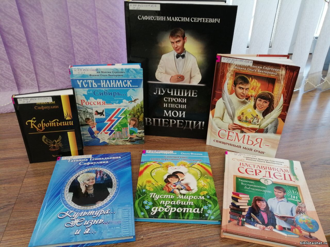 В январе 2026 года Тайшетская модельная библиотека получила в дар коллекцию книг с памятными автографами. Дар преподнесли два сибирских автора из города Усть‑Илимска Иркутской области - Максим Сергеевич Сафиулин и Ольга Викторовна Фокина, члены Союза детских и юношеских писателей. В книге поэта и композитора М. Сафиулина «Лучшие строки и песни мои впереди!» собраны стихотворения и проза, написанные в период с 2001 по 2024 годы. Они представлены в жанрах: любовной, философской, гражданско-патриотической, пейзажной лирики, стихи для детей, а также юмористические и сатирические стихотворения, многие темы поднимаются с чувством юмора, присущим Максиму Сергеевичу, ведь «улыбка – ключ от всех дверей». В книге «Коротыши» содержится более 500 коротких, но ярких стихотворений. Уверены, что сборник станет любимой настольной книгой ценителей юмора и тех, кто имеет философский взгляд на жизнь. В конце сборника читатель найдет биографию автора и рецензии. В солнечной и жизнеутверждающей книге «Пусть миром правит доброта» совместного творчества поэтов Ольги Фокиной и Максима Сафиулина, объединены стихотворения, которые подарят юным читателям мир любви и доброты, дадут надежду, отогреют и вдохновят, напомнят о том, что самое главное в нашей жизни и ради чего мы все живём. Сборники поэзии «Семья – священный мой очаг» и «Наставникам сердец: учителям, воспитателям, библиотекарям» для семейного чтения, в них собраны замечательные стихи практически про всё: о семье, любви, доброте, профессиях, календарных праздниках и др. Любовь к своему краю и его жителям, природе, любовь к жизни, доброта, свет и тепло – всё это в каждой строчке сборника «Усть-Илимск… Сибирь… Россия…». Краеведам и историкам будет интересна книга воспоминаний Татьяны Геннадьевны Сафиулиной «Культура… Жизнь… И я…» о жизни и работе в сфере культуры. В ней собраны воспоминания о прошлом, людях, окружавших автора всю жизнь, любовь к городу Усть-Илимску, желание жить и работать. Здесь же нашли свое место стихи, написанные ее младшим сыном в память о любимой маме. Книга – лучший подарок, а для библиотеки – особенно. А если её подарил сам писатель, да ещё с автографом, то этот подарок – бесценен. Автограф – это не просто надпись на книге, это знак особой благодарности и признательности, это частичка души самого автора. Тот факт, что сам автор держал книгу в руках, оставил дарственную надпись, делает её ценной, единственной в своём роде. Спасибо авторам за добрые стихотворения и добрые книги! Эти книги обязательно будут востребованы! Дорогие читатели, приходите к нам в библиотеку, познакомьтесь с новыми книгами!!!