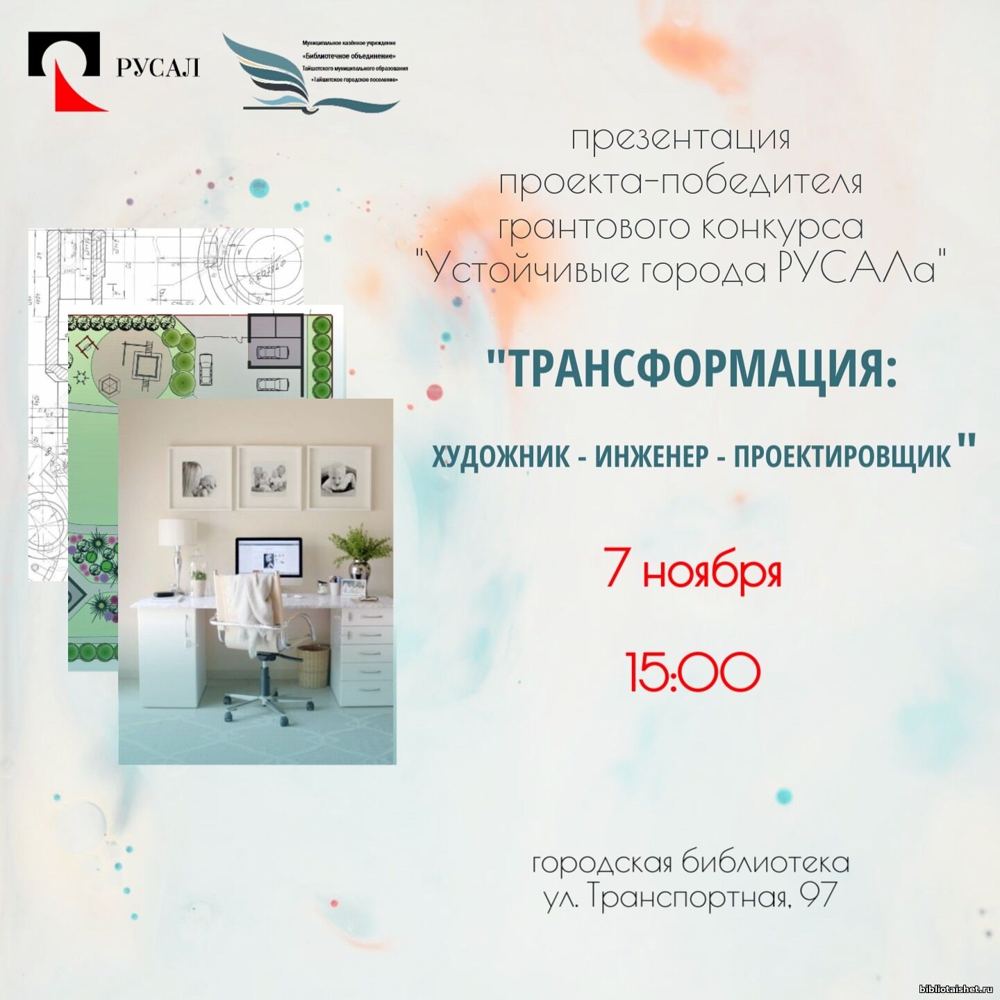 РУСАЛ подвёл итоги открытого грантового конкурса социальных проектов «Устойчивые города РУСАЛа». Компания поддержала 17 проектов, направленных на улучшение качества жизни людей и развитие населенных пунктов России. В число победителей вошел проект Тайшетской городской библиотеки «Трансформация: художник-инженер-проектировщик». На базе тайшетской городской библиотеки появится новая площадка - «Технологии в дизайн образовании». Проект прежде всего нацелен на оказание помощи подросткам 14-17 лет по подготовке к поступлению в ВУЗы на профессии, связанные с архитектурой и дизайном, а также жителям, планирующим оформить социальный контракт. Для студентов ВУЗов, техникумов будет предоставлена возможность работы с программным обеспечением по проектированию и черчению из серии AutoCAD. Инициативные жители смогут разработать дизайн – проекты по благоустройству общественных пространств, с целью их участия в конкурсах областного и муниципального уровней. С 10 ноября 2025 года будет открыт набор групп на обучение работе с дизайн-программами по направлениям: «Графический дизайн», «Ландшафтный дизайн», «Архитектурный дизайн». Если у вас появилось желание стать участником или партнером проекта, появились вопросы, мы рады видеть вас в городской библиотеке по адресу: г. Тайшет, ул. Транспортная ,97, тел.: +7 (991) 370-41-67. Приглашаем всех желающих на презентацию проекта