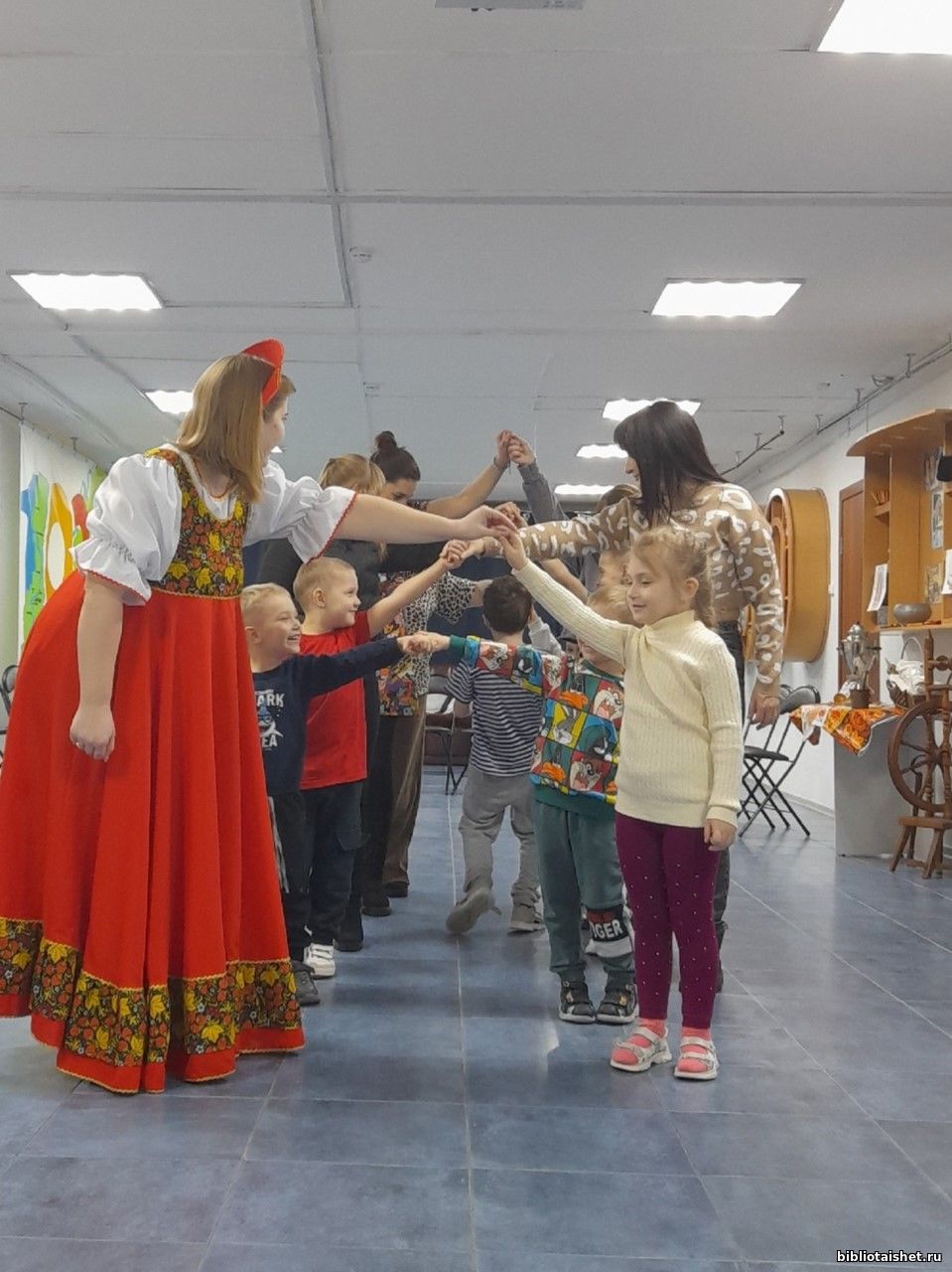 «Знакомство с обычаями и традициями русского народа» Библиотекари постарались воссоздать для ребят атмосферу русской избы, где дети смогли увидеть предметы старинного быта: самовар, прялку, вышитые рушники. Им рассказали о том, как жили люди на Руси, какие ценности почитали и как отмечали праздники. Как было принято на Руси в праздники, ребята водили хороводы и играли в русские народные игры. Не обошлось и без музыкальных инструментов. Дети познакомились с игрой на ложках — одной из самых популярных народных забав, освоили простые ритмы и мелодии. Такое мероприятие не только развивает у детей интерес к культуре своего народа, но и помогает им лучше понять свои корни.